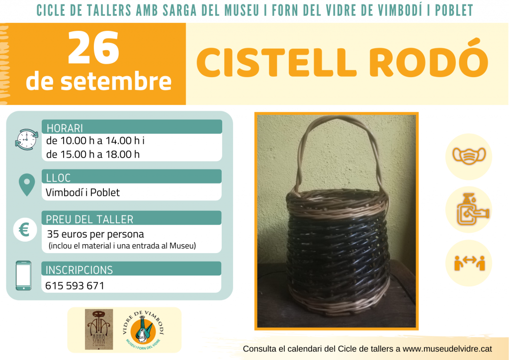 Les persones interessades a participar d’aquest taller, que es durà a terme de 10 a 14 hores i de 15 a  18 hores, ja poden formalitzar la seva inscripció prèvia al telèfon 615 593 671 (Anna). El preu del taller és de 35 euros per persona, un import que inclou tot el material necessari per aprendre la tècnica de confecció del cistell rodó, que s’usava tradicionalment per recollir fruits com les cireres. També inclou una entrada al Museu del Vidre per gaudir en directe d’una demostració.